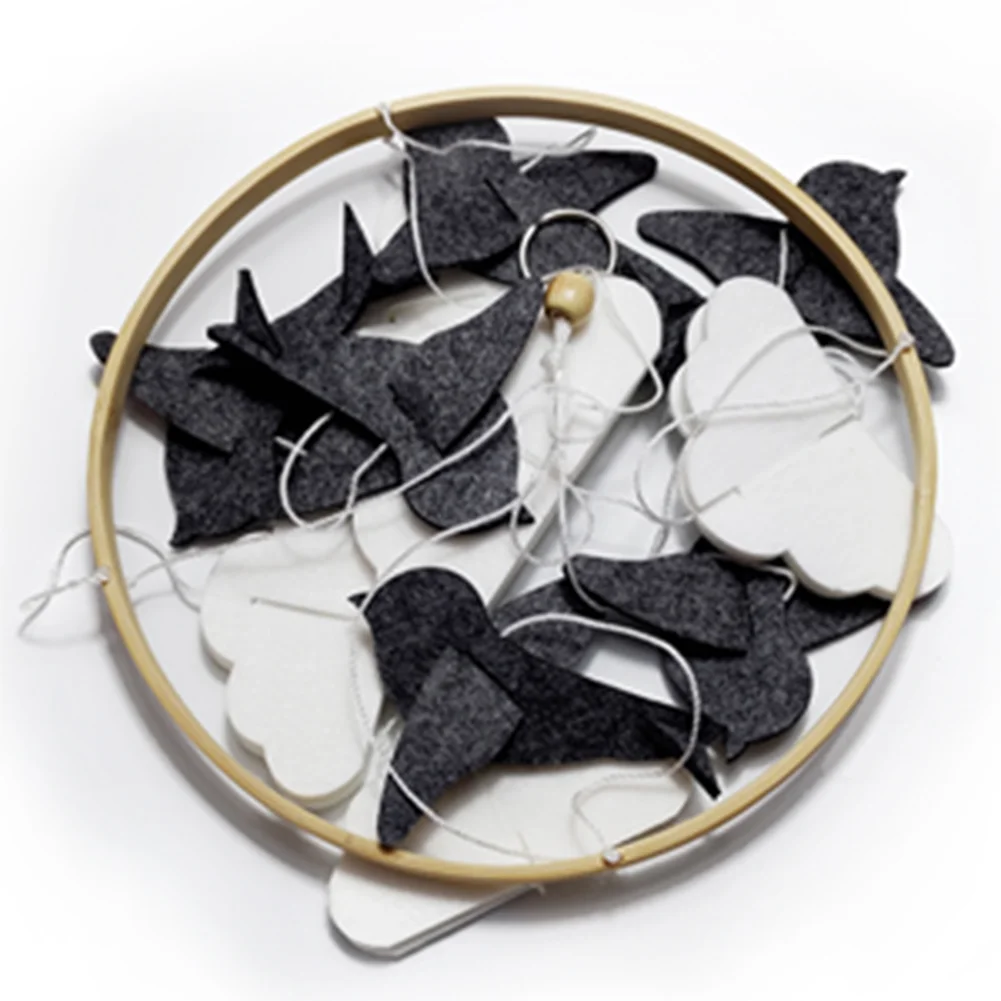 1. Каждый содержит 6 птиц, 5 облаков и 1 деревянный обруч, все из которых изготовлены из 100% войлока.1X деревянный обруч (диаметр: около 7,75 дюймов)