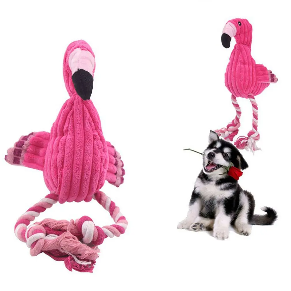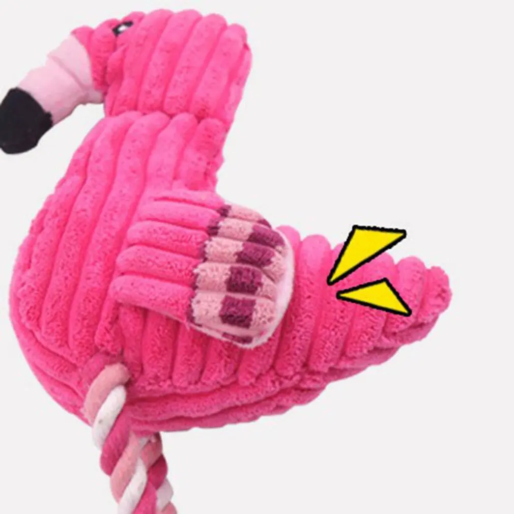 Этот продукт представляет собой звуковую игрушку с изображением фламинго, и дизайн с узлом ноги может удовлетворить желание питомца измельчать зубы и кусать.