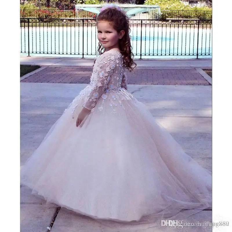 Платья для первого причастия для девочек; Платье с открытой спиной и аппликацией в виде цветка для девочек; Бальное платье из фатина с бантом; Пышные платья для девочек