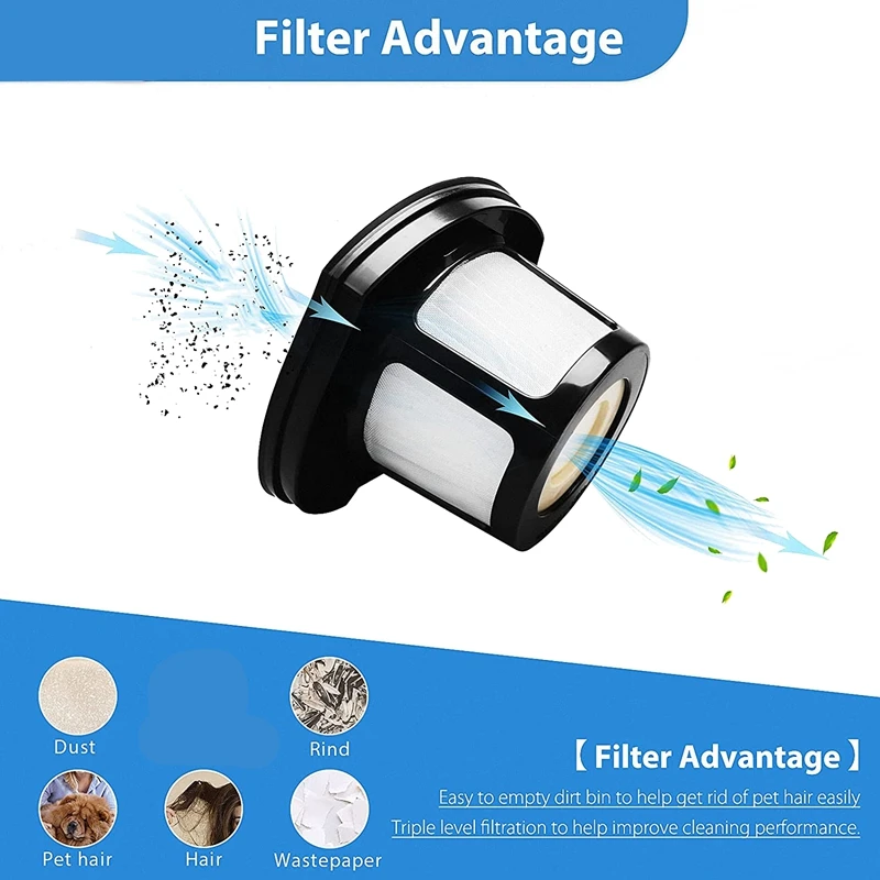 [Преимущество фильтра]: легко очистить мусорное ведро, чтобы помочь легко избавиться от волос домашних животных. Тройная фильтрация для улучшения производительности очистки.