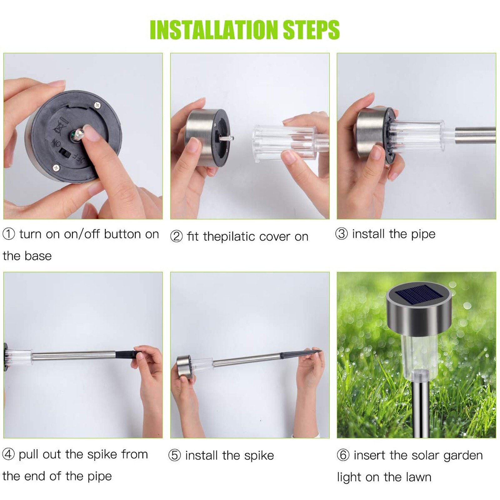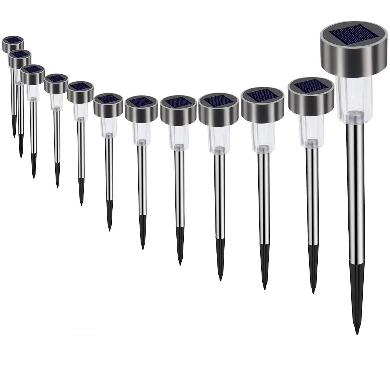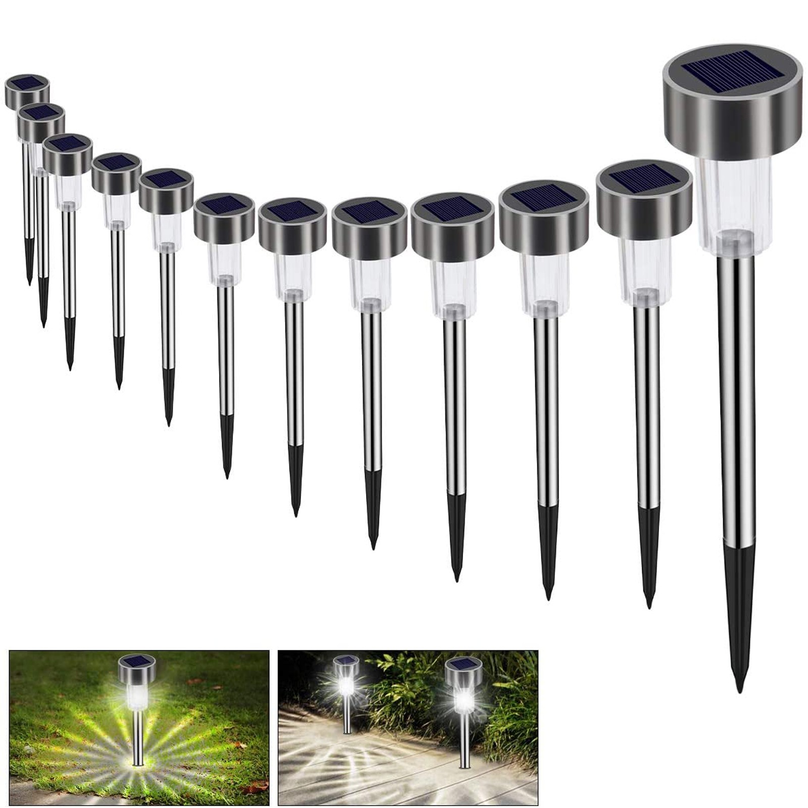 --[12 шт. набор напольных ламп] Наши наружные солнечные огни оснащены 12 шт. огнями, простыми в установке и хорошим наружным освещением. Если у вас есть какие-либо вопросы, пожалуйста, свяжитесь с нами.