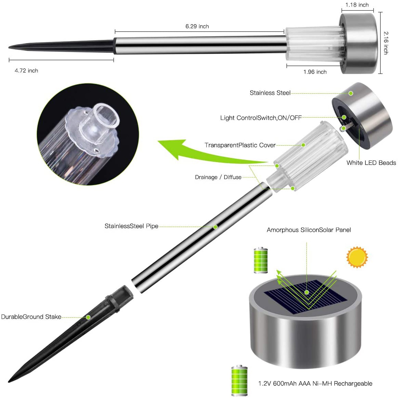-- [Все погодные условия] водонепроницаемые садовые фонари изготовлены из водонепроницаемого материала IP65 из нержавеющей стали, и нет проблем в дождливые и снежные дни.