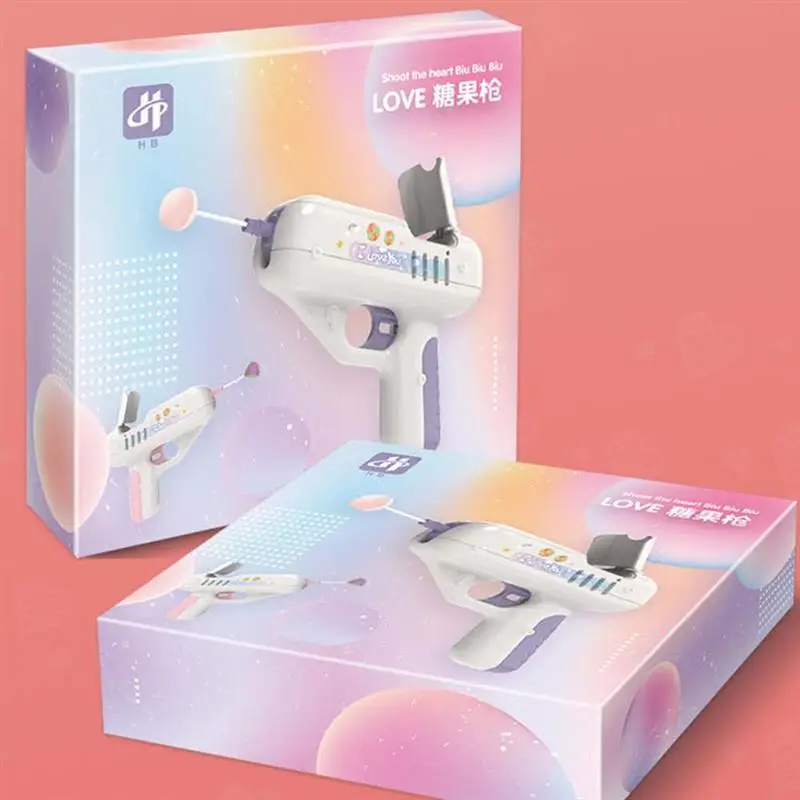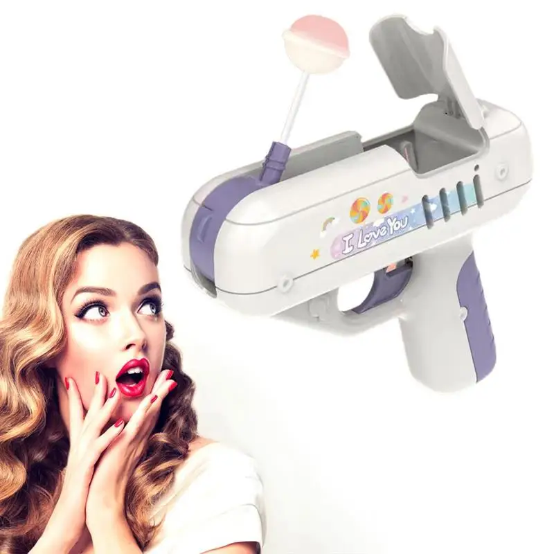1. Состоит из пластика, встроенного проигрываемого аккумулятора, просто нажмите на спусковой крючок, чтобы выскочить леденец.