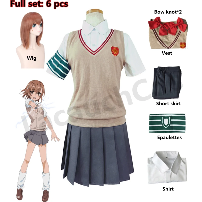Аниме Костюм Misaka Mikoto школьная форма косплей Shirai Kuroko JK Toaru Kagaku no Railgun Uiharu kazari парик для девочек эполеты