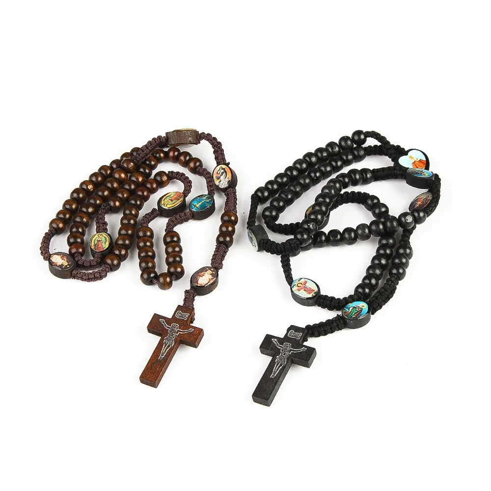 Христианско-католическое ожерелье Иерусалимский деревянный крест ожерелье с подвеской «Святой Христос» Для женщин четки молитвенные бусы ожерелье