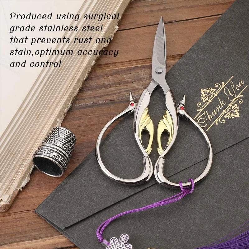 -Прочная сталь, удобная ручка Остроконечные края и острые лезвия позволяют легко резать вещи, они имеют идеальный вес и достаточно острые, чтобы попасть в небольшие углы и узкие пространства. Гладкие ручки и идеально сидят на руках. -Великолепный и уникальный стиль Они также очаровательны в ретро-Европейском стиле, отличное дополнение к личной коллекции. Это лучший выбор для подарка для ваших друзей, которым нравится ручная работа. Если вам нравится иметь вещи, которые немного необычны, вам это понравится! -Несколько сценариев применения Подходит для обрезки (тканевая нить, шпагат, шерсть), бумаги, тонкого льна, волос и других мелких рукоделия, таких как вышивка, бумага, швейная нить и так далее. Может использоваться как вспомогательный инструмент для шитья или предметов первой необходимости или украшений.