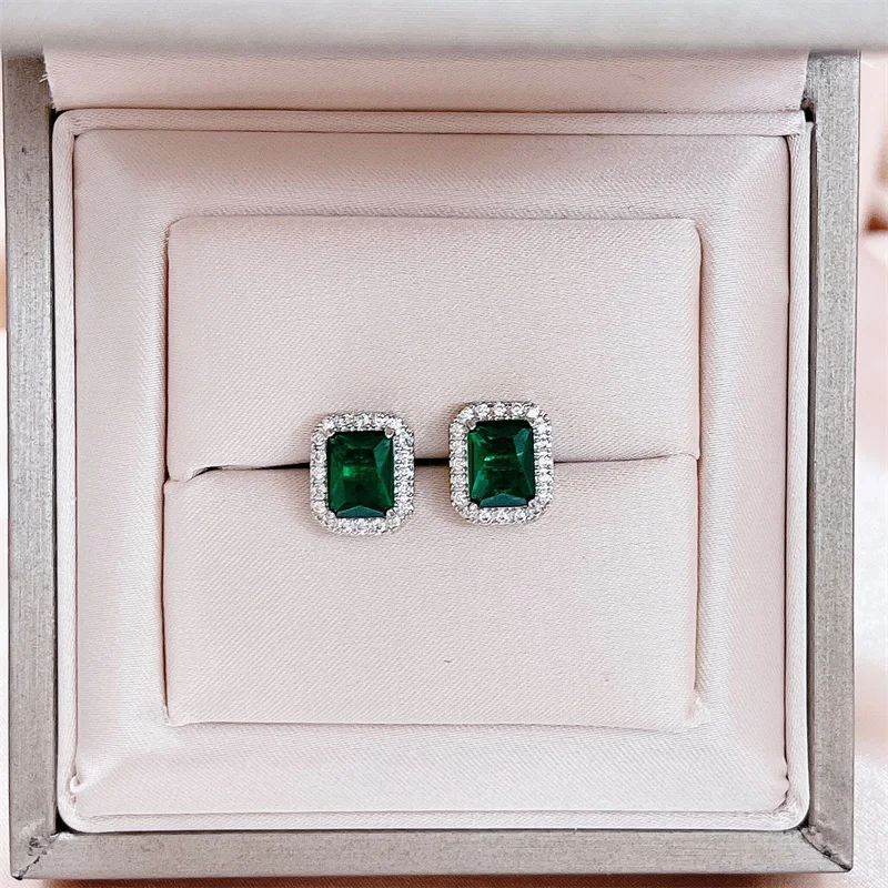 Классические серьги из серебра 925 пробы с изумрудами и фианитами