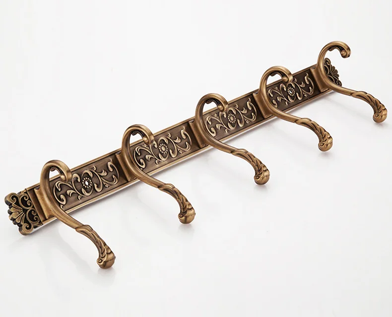 Роскошный крючок с резьбой в античном стиле из латуни настенный держатель для полотенец аксессуары для ванной двери одежды 5 ряд крючков вешалка для одежды