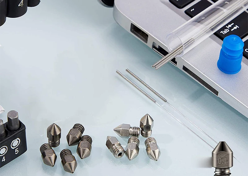 3. Высокая точность: внутренняя стенка насадок MK8 гладкая и не имеет заусенцев, коэффициент вязкости небольшой, ошибка диаметра сопла экструдера менее 0,02 мм, обеспечивает вам точную и плавную экструзию