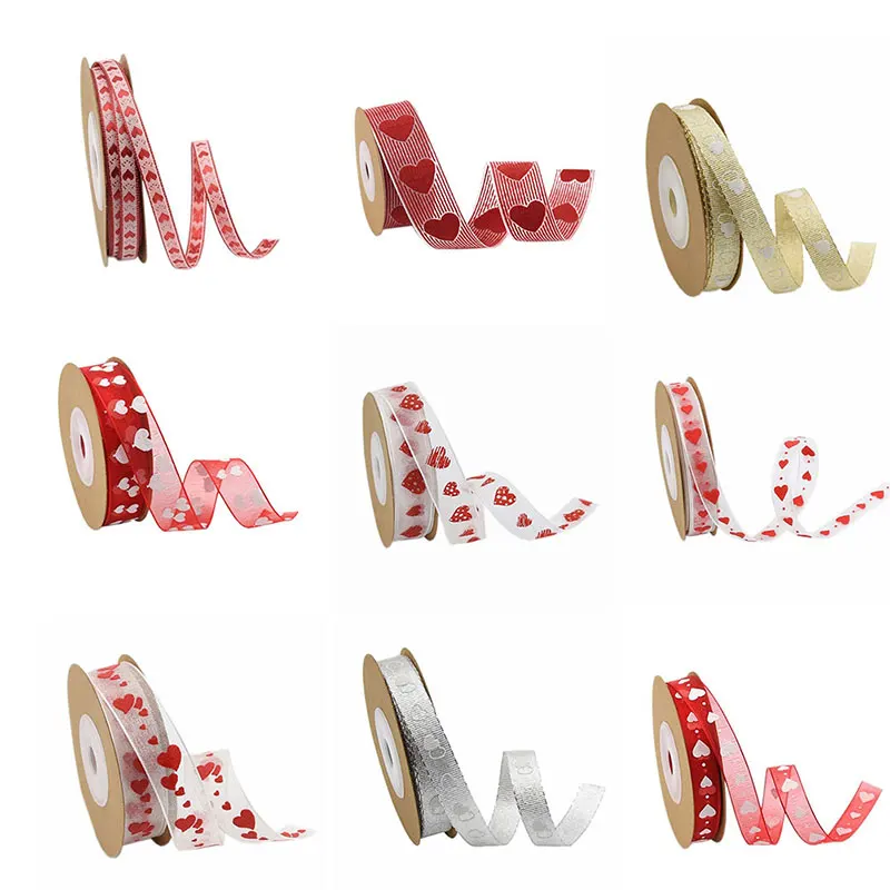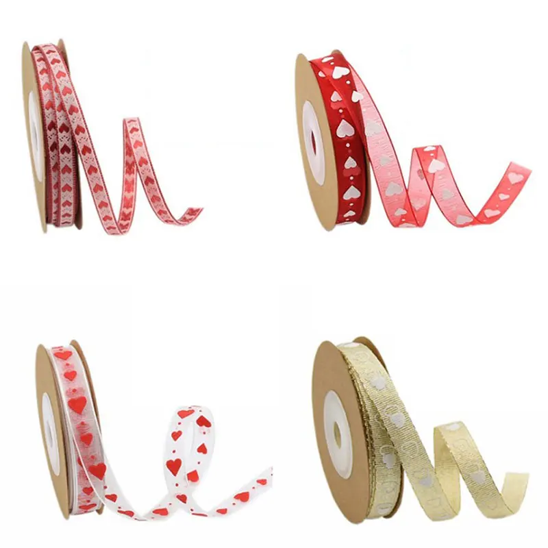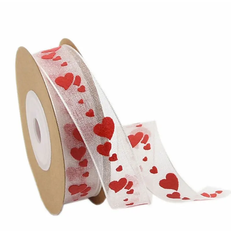 8. 2 ярда высокого качества любовь сердце ленты печать на прозрачной поверхности Свадьба любовник фестиваль вечерние Декор бант ремесло карты подарки упаковочные принадлежности
