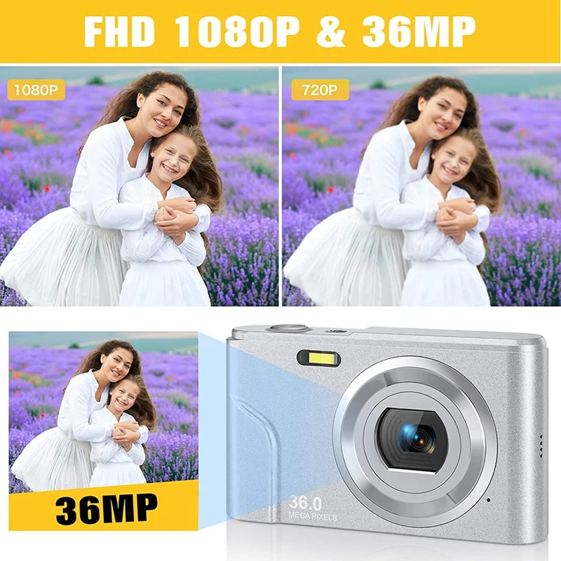 [FHD 1080P and 36 million pixel digital camera] This digital camera has FHD 1080P resolution and 36 million pixels, which can help you capture exciting and memorable moments, high-quality images or videos. Fully meet your needs, you can enjoy a good time with friends, family and classmates.