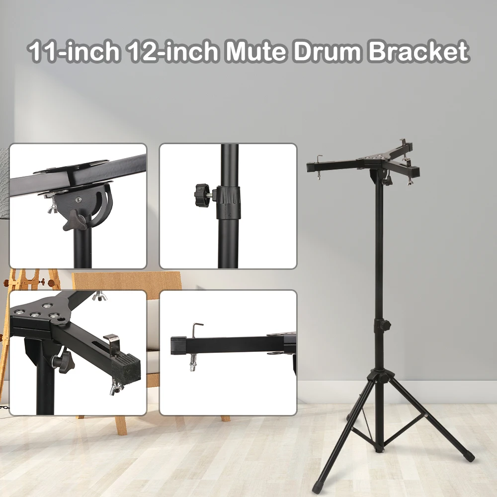 Немой барабан держатель может быть отрегулировано от 11 дюймов до 12 дюймов.