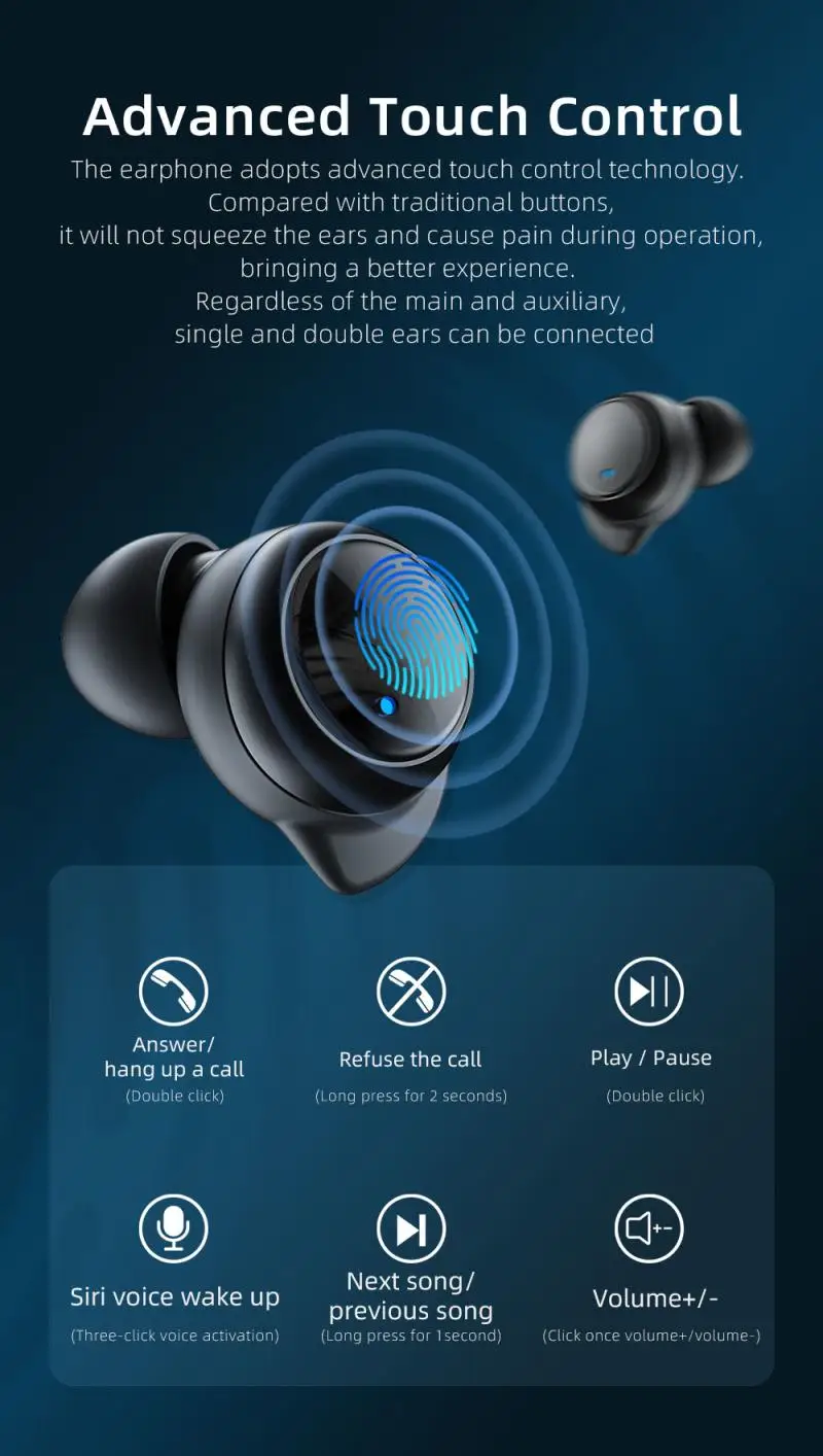 5. Наушники имеют передовую технологию сенсорного управления. По сравнению с традиционными кнопками наушники не будут сжимать ухо и причинять боль во время работы, что приносит лучший опыт. Независимо от первичного и вторичного, одиночные и двойные уши могут быть подключены