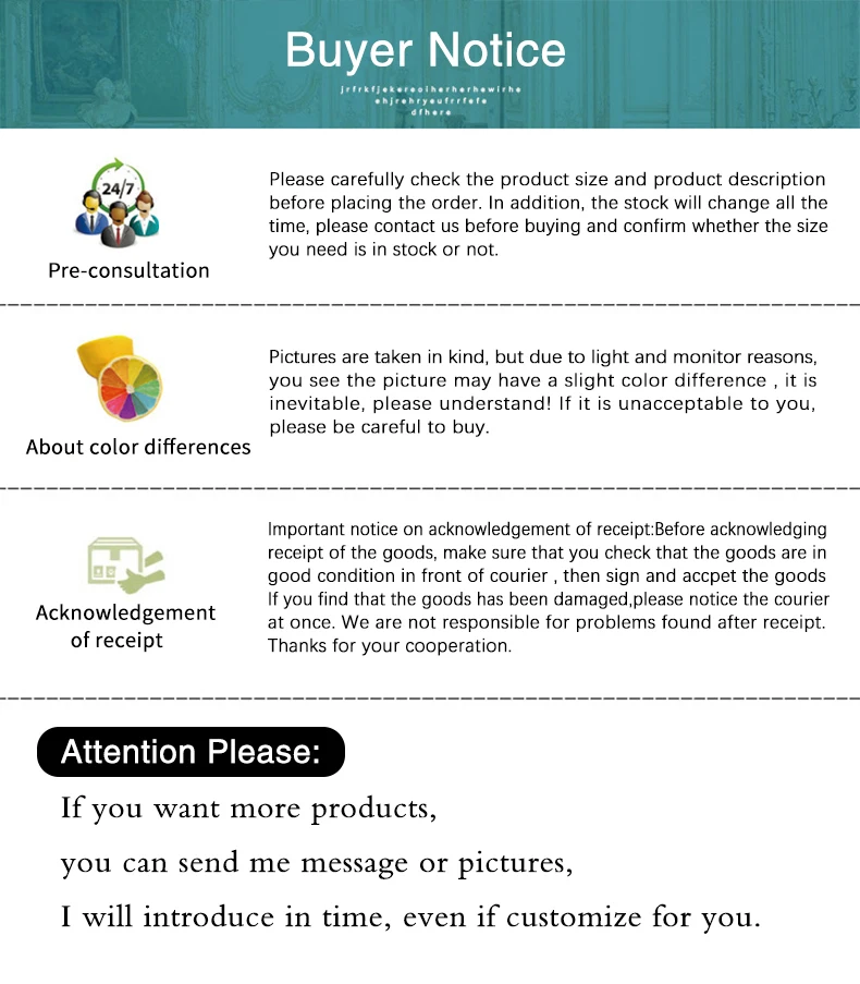 2. Если у Вас возникли какие-либо проблемы с нашими товарами или обслуживанием, пожалуйста, свяжитесь с нами, прежде чем оставить отрицательотзывы в. Мы сделаем все возможное, чтобы решить любые проблемы и предоставить Вам лучшее обслуживание клиентов