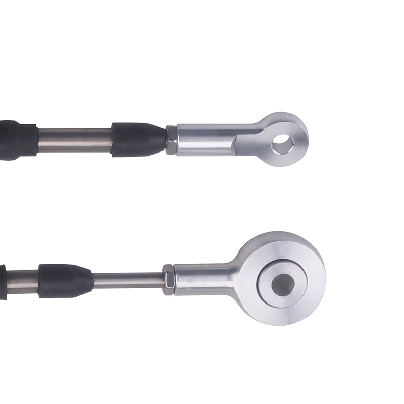 Кабели для перестановки гоночных спиц изготовлены почти полностью из нержавеющей стали, включая очень важный внутренний кабель и все открытые направляющие кабеля. Внешний кабель изготовлен с низким коэффициентом трения с тефлоновым покрытием и теплостойким полиэтиленовым покрытием. Даже монтажные концы кабеля изготовлены из нержавеющей стали и были разработаны с резьбовой секцией для устранения необходимости в oem кабельных зажимах. Тем не менее, обратите внимание, что oem зажимы все еще могут быть использованы при желании. Последние являются стержневыми концевыми соединениями, они полностью регулируются и изготовлены из 6061 заготовки алюминия на всех четырех концах. Мы сделали одну небольшую регулировку в селекторе передач, здесь мы все еще используем конец заготовки, но мы добавили сферическую вставку Delrin, чтобы обеспечить правильное движение в этом соединении. Благодаря этому движению можно уменьшить привязку кабеля во время переключения. Есть даже бонус, потому что мы также включили наш кабельный кронштейн для заготовки, чтобы сделать эту полную посылка.