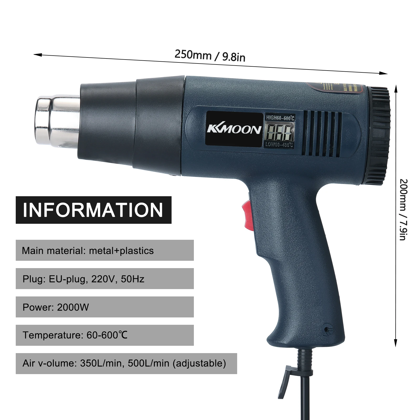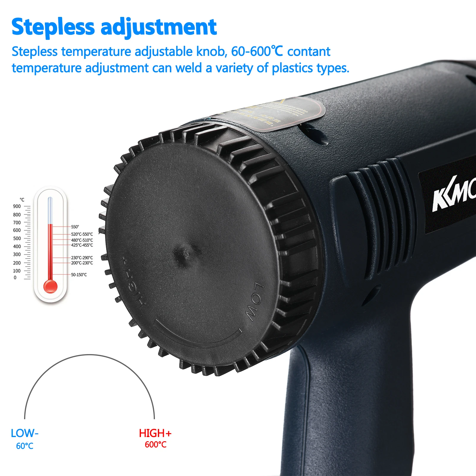 Бесступенчатая ручка регулировки температуры, 60-600 ℃ контактная регулировка температуры может сварить различные типы пластмасс.
