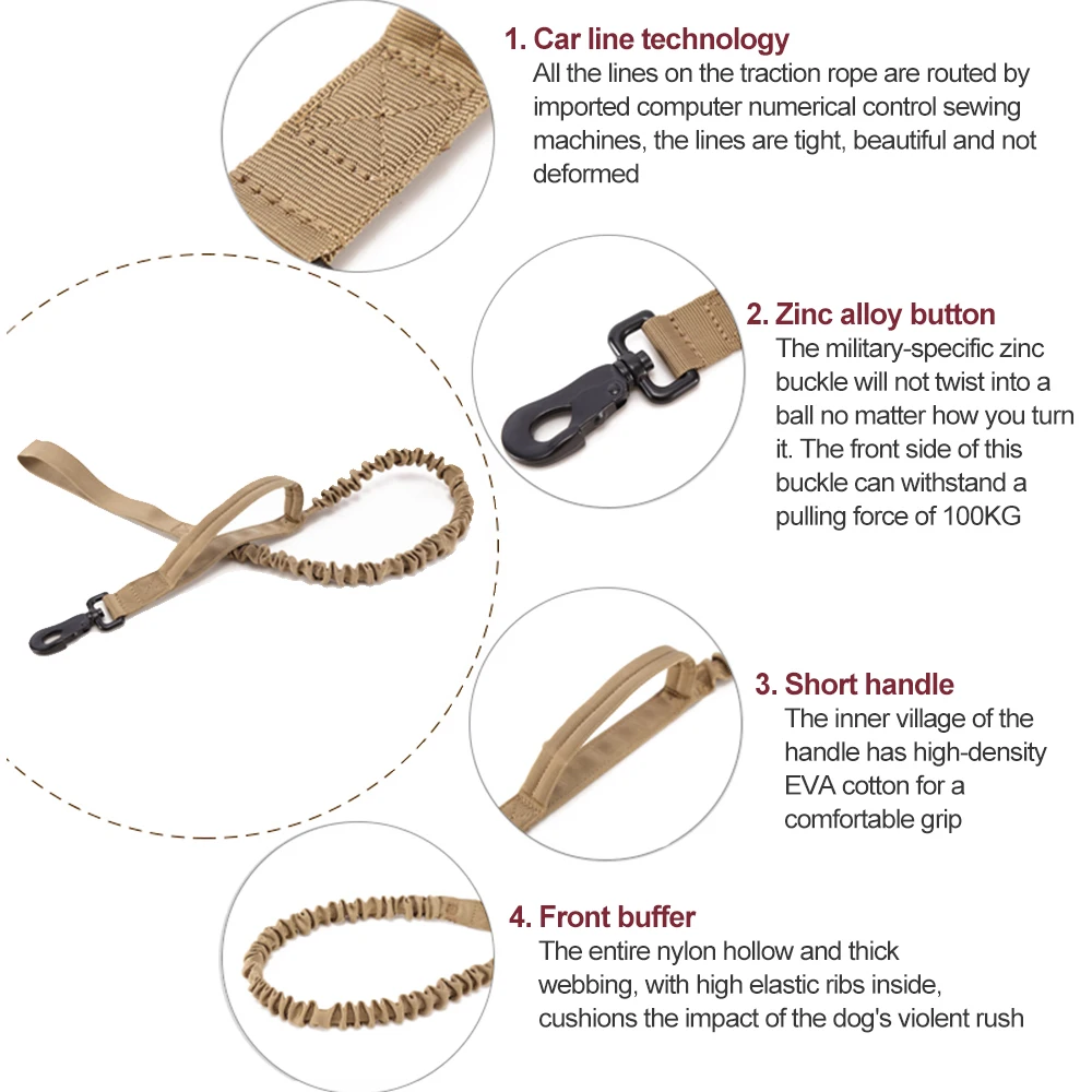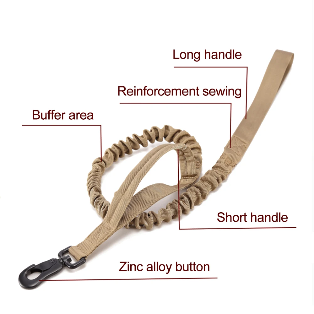 2 ручки управления. Этот военный поводок для собак имеет две ручки, одну ручку на конце и одну мягкую ручку возле зажима. Близко к зоне зажима или ошейника приятно быстро получить контроль. Этот поводок k9 подходит для дрессировки собак, охоты, самоедов, овчарок, идеально подходит для больших и средних собак.