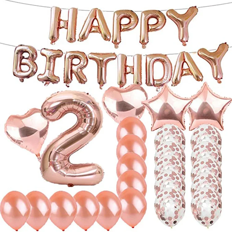 ♥1) 16 дюймов письмо с днем рождения 1 комплект (розовое золото) ♥2) 18 дюймов звезды 2 сердца 2 розовое золото ♥3) 30 дюймов Большой цифровой 2 (розовое золото) 1 шт. (цифровой сменный) ♥4) шар цвета розового золота 10 штук 12 дюймов ♥5) розовое золото красочный шар 10 штук, 12 дюймов ♥6) лента 1 рулон ♥7) 1 солома ♥8) Вес: 208 г