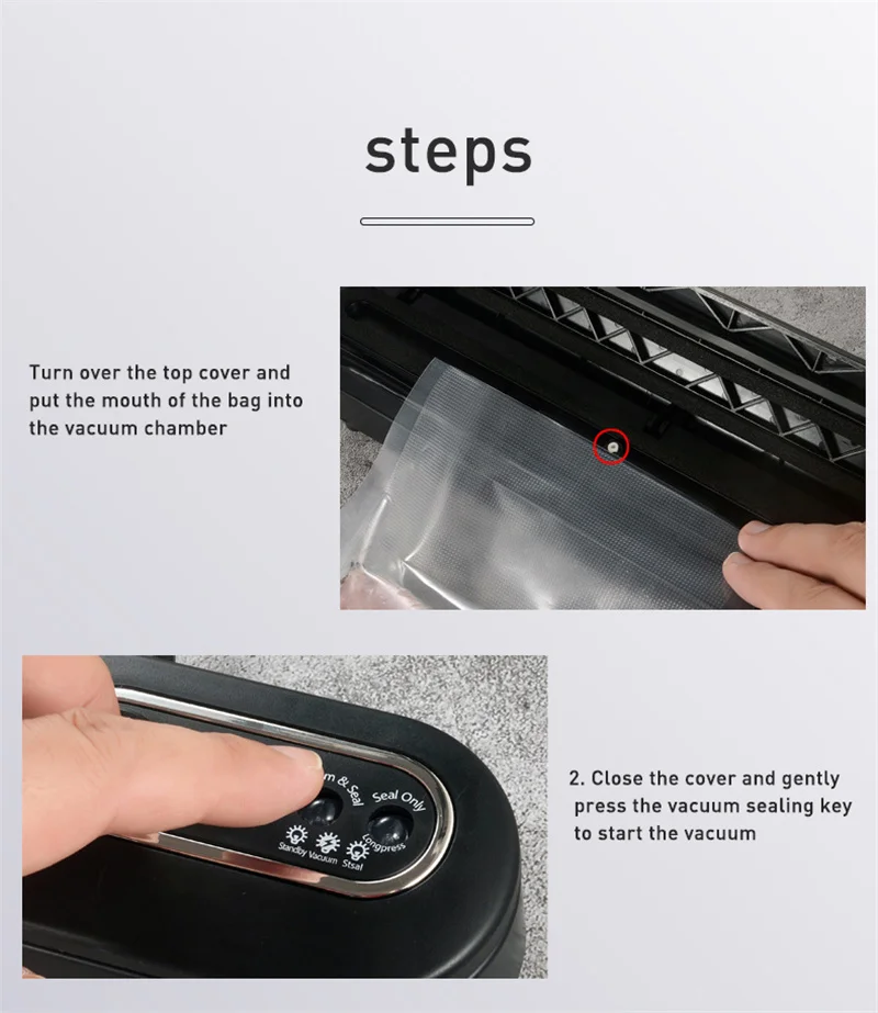 При использовании вакуумной уплотнительной машины, пожалуйста, используйте специальный желобчатый уплотнительный мешок,