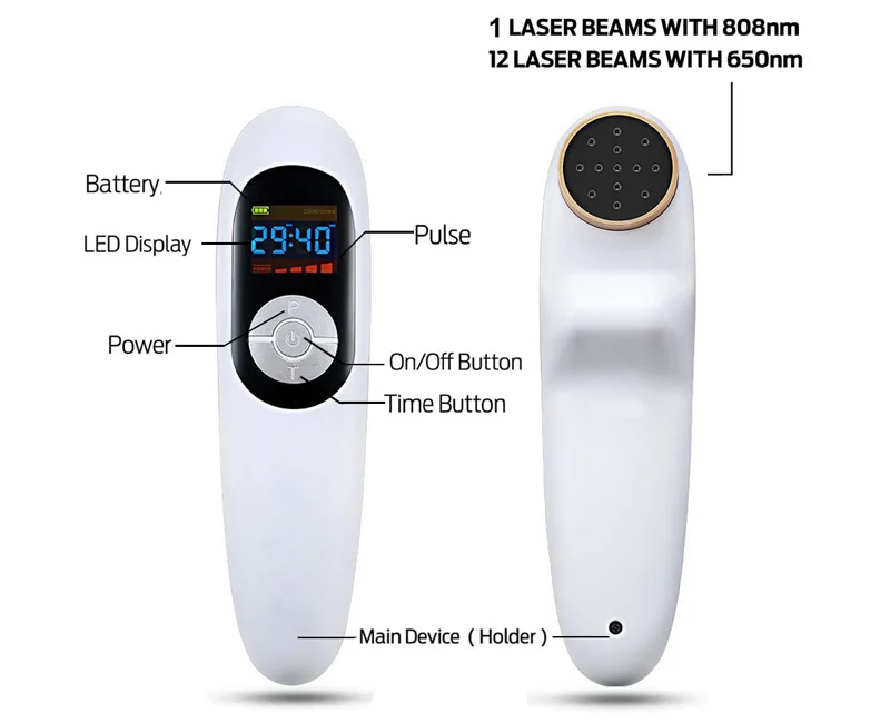 808 нм, инфракрасный лазер может проникать в кожу до 5-7 см, непосредственно ориентируясь на точку боли в глубокой области. 650 нм, красный лазер может проникать в кожу до 2-3 см, помогает улучшить кровообращение, противовоспалительное прилегающее место точки боли. Таким образом, 808 нм + 650 нм вместе будут иметь лучший лечебный эффект для облегчения боли в теле.