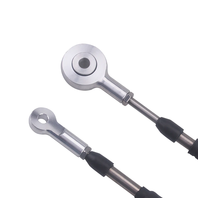 Кабели для перестановки гоночных спиц изготовлены почти полностью из нержавеющей стали, включая очень важный внутренний кабель и все открытые направляющие кабеля. Внешний кабель изготовлен с низким коэффициентом трения с тефлоновым покрытием и теплостойким полиэтиленовым покрытием. Даже монтажные концы кабеля изготовлены из нержавеющей стали и были разработаны с резьбовой секцией для устранения необходимости в oem кабельных зажимах. Тем не менее, обратите внимание, что oem зажимы все еще могут быть использованы при желании. Последние являются стержневыми концевыми соединениями, они полностью регулируются и изготовлены из 6061 заготовки алюминия на всех четырех концах. Мы сделали одну небольшую регулировку в селекторе передач, здесь мы все еще используем конец заготовки, но мы добавили сферическую вставку Delrin, чтобы обеспечить правильное движение в этом соединении. Благодаря этому движению можно уменьшить привязку кабеля во время переключения. Есть даже бонус, потому что мы также включили наш кабельный кронштейн для заготовки, чтобы сделать эту полную посылка.