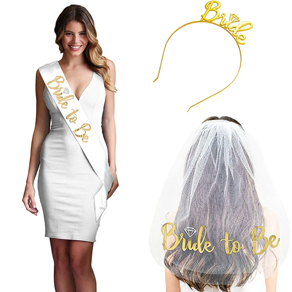 1 комплект с поясом для невесты + головная повязка для невесты + вуаль для невесты, хорошо упакованная в полиэтиленовый пакет