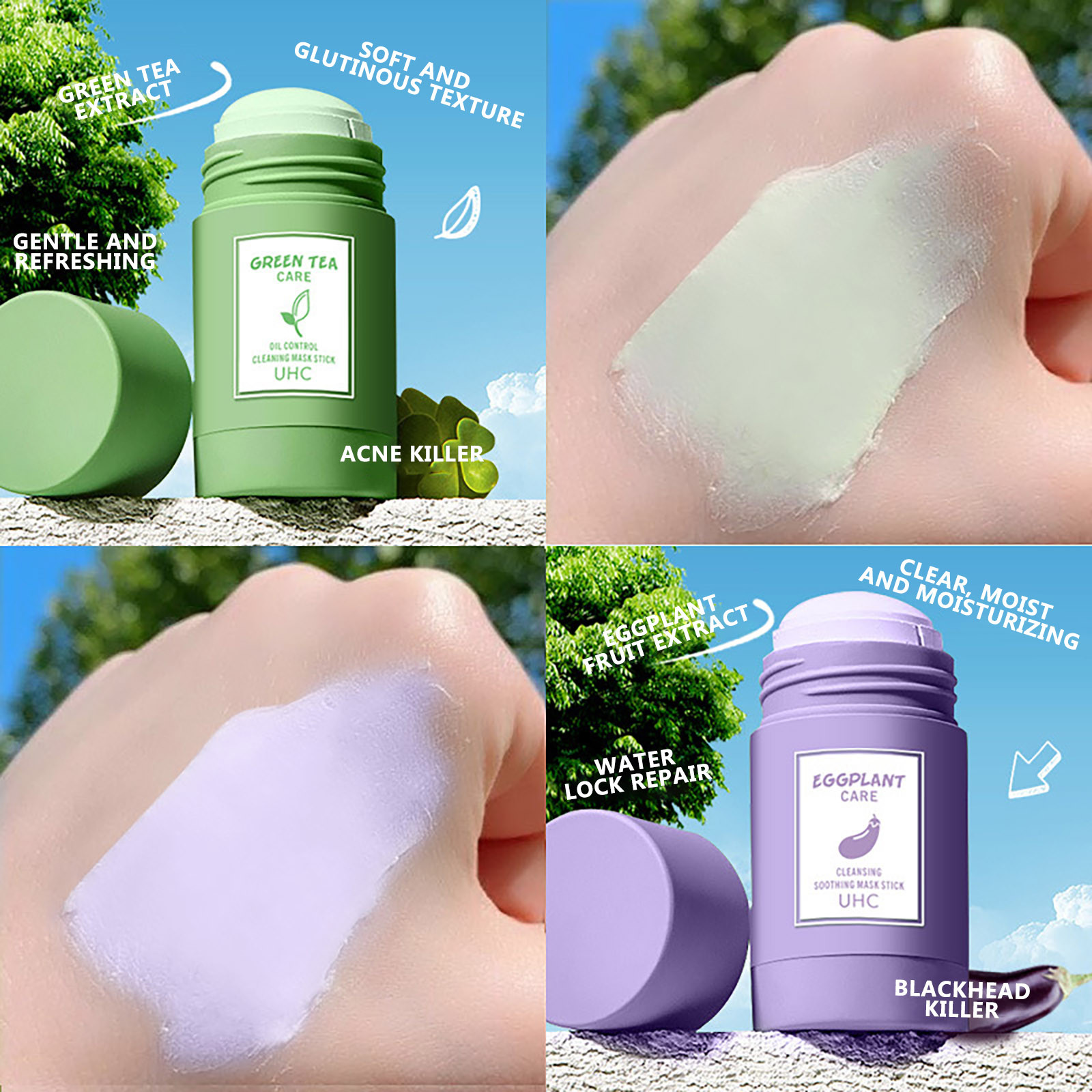 Маска для очистки зеленого чая, контроль жирности, против акне, баклажан, твердая, тонкая