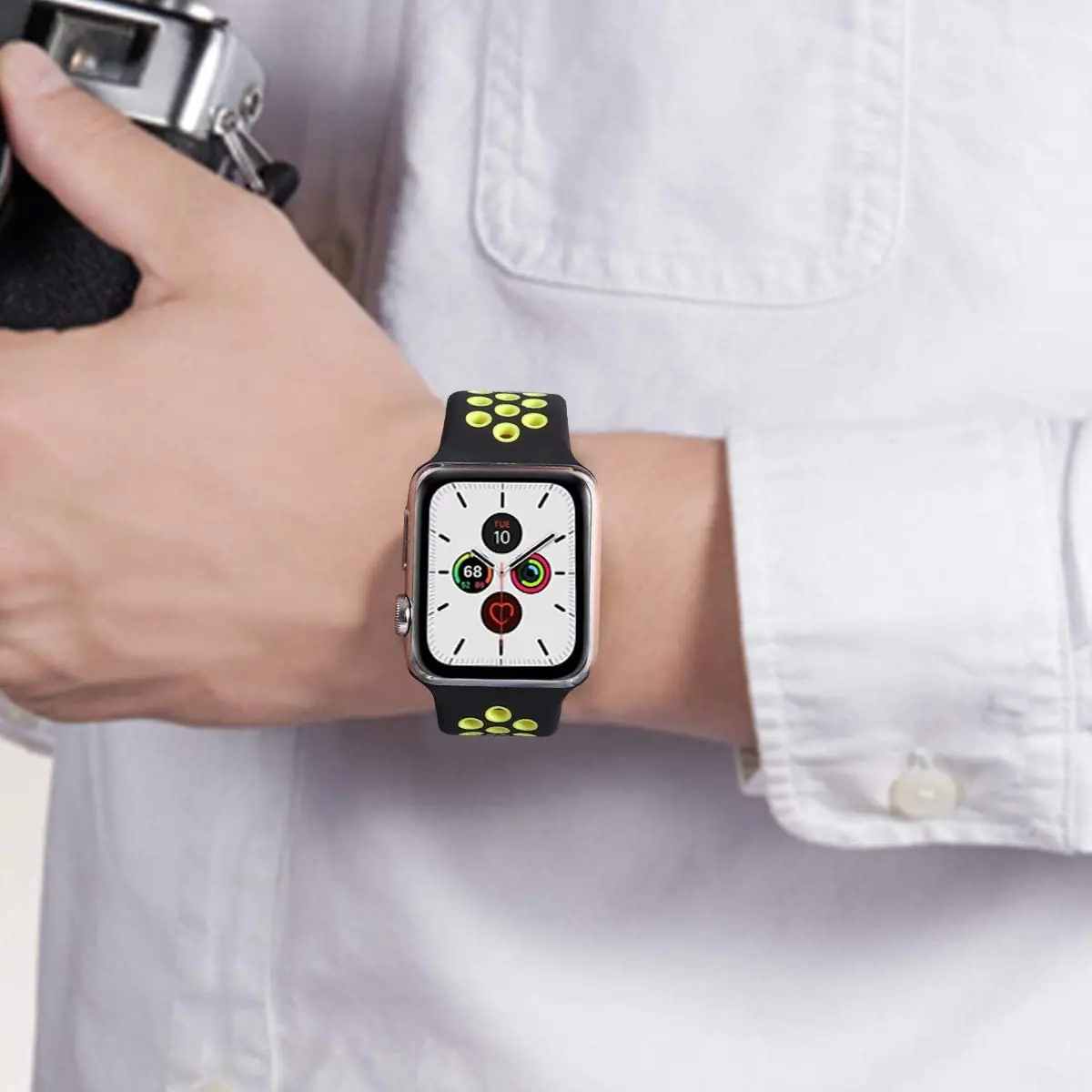 Особенности Тип: ремешок для часов Материал: силикон Тип застежки: Пряжка из нержавеющей стали Совместимый бренд: для Apple Совместимая модель: для Apple Watch Series 1 2 3 4 5 Примечания: Часы на картинке в комплект не входят. Из-за разницы в освещении и настройках экрана цвет товара может сильно отличаться от изображений. Посылка входит: 1 ремешок для часов