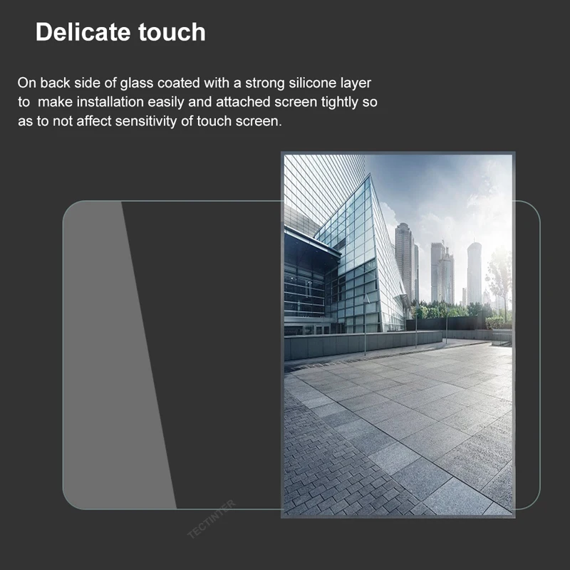 5. Деликатное прикосновение: задняя сторона крепких клеев, легко устанавливается, близко к экрану, и поэтому не влияет на чувствительность сенсорного экрана.