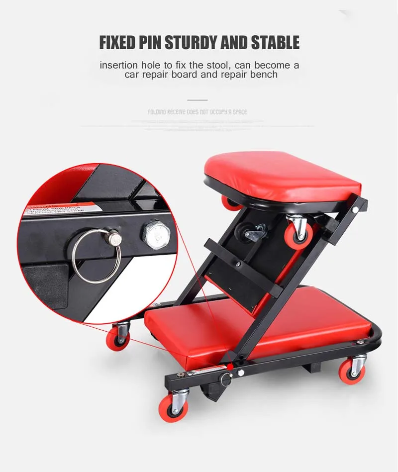 2-в-1 тележка механика сиденье, большой красный гаража завальцовки/магазин с толстой мягкой подошвой