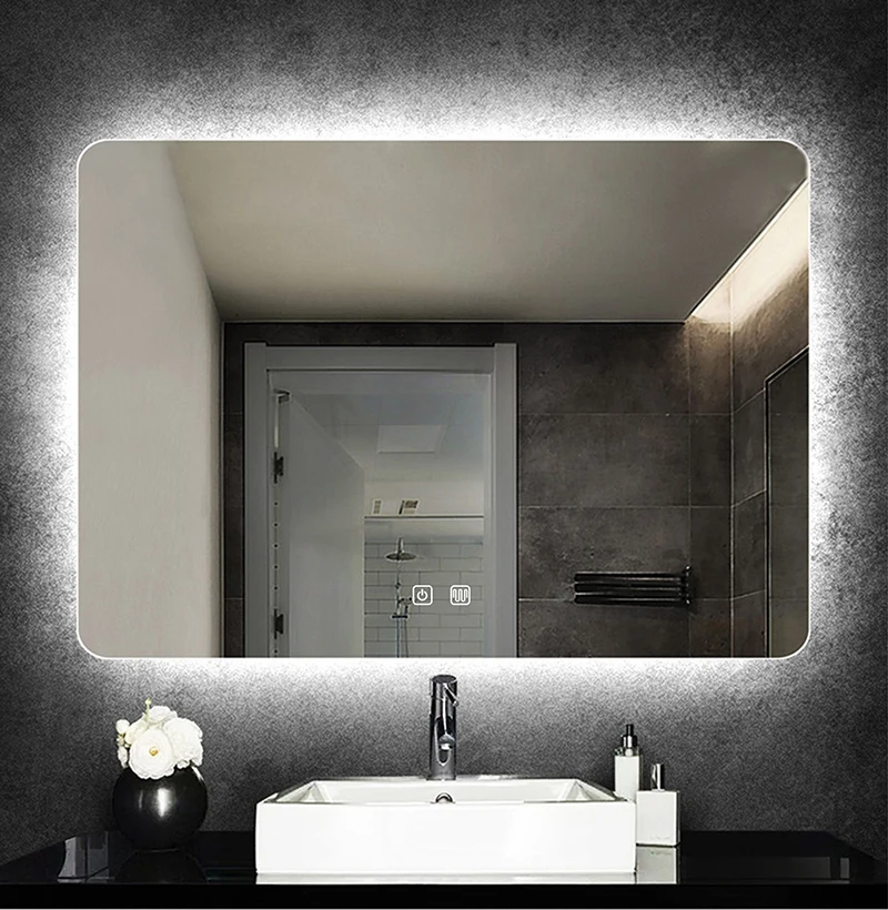 50X70cm(19.7x27.6in) / 60x80 см (23.6x31.5in) прямоугольник настенный Ванная комната умное зеркало со светодиодной подсветкой светильник противотуманное зеркало для макияжа Подсветка светильник сенсорный выключатель затемнения зеркала заднего вида