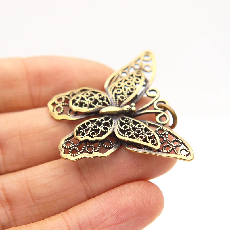 Ретро латунный полый брелок с бабочкой, подвески, ювелирные аксессуары, металлическая медь, красивое животное, Очаровательная Автомобильная цепочка для ключей, подвесная сумка
