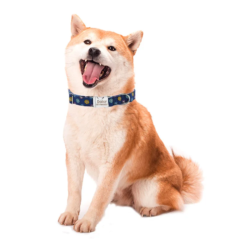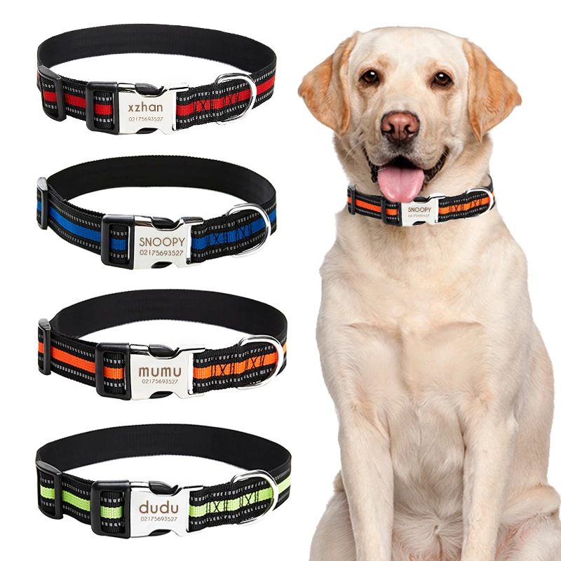 Тип: нейлоновый ошейник для собак, персонализированный ошейник с гравировкой, идентификационная табличка, светоотражающая табличка для маленьких, средних и больших собак, питбуля, Мопса