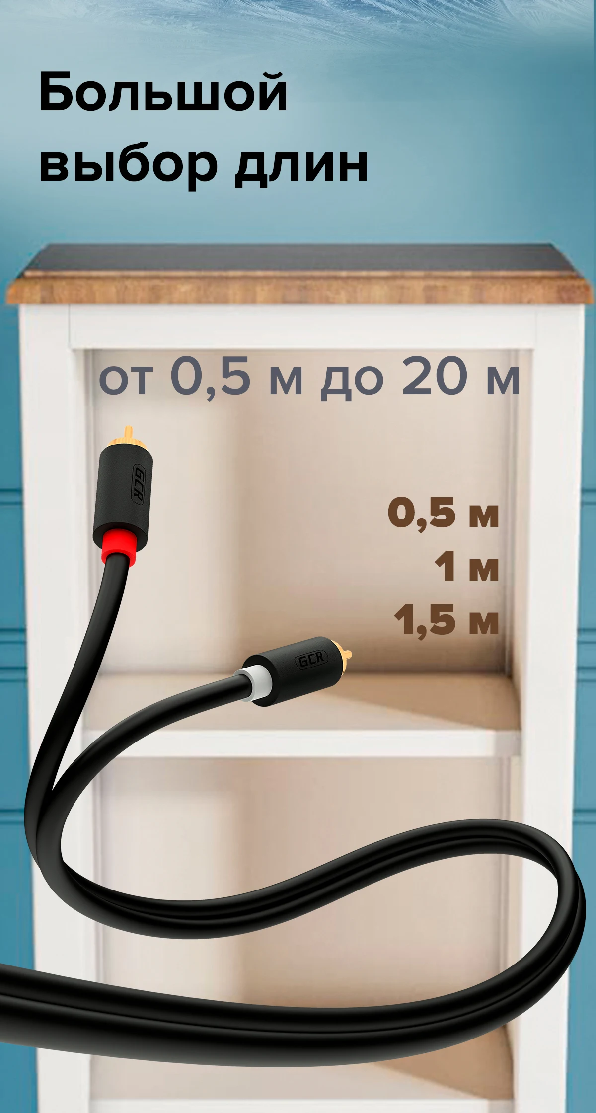 Аудио кабель GCR предназначен для надежного и качественного соединения аудио техники. По кабелю осуществляется передача звукового сигнала между устройствами, оснащенными аудио разъемом RCA L/R (тюльпаны).