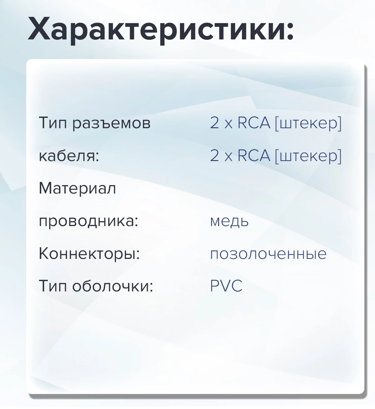 Используя этот кабель, вы получите безупречное качество сигнала, превосходное звучание и непередаваемые ощущения от прослушивания музыки.