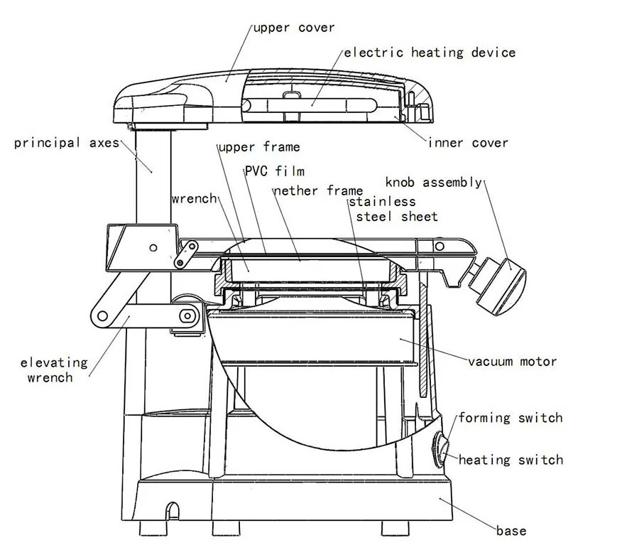 Технические характеристики Тип: стоматологическая вакуумная формовочная машина Напряжение: 220 В/50 Гц ± 10%; 110 В/60 Гц ± 10% Мощность: 1000 Вт Размеры: 25*21*30 см Вес: 6 кг Руководство пользователя 1. Nct машина с powe 220 В/50 Гц 110 В/60 Гц, проверьте состояние вакуумного двигателя и электрического нагревательного устройства. 2. Верхняя крышка 90 ° (слева или справа), поместите пленку между верхней и внутренней рамой и переключите ручку, чтобы плотно закрыть рамки. Поверните верхнюю крышку и нажмите на подъемный ключ, чтобы поднять раму в рабочее положение (есть держатель положения на основных осях). Затем поместите изделие в середину листа и включите нагревательное устройство для нагрева пленки. Выключите нагревательное устройство (примерно через 2-3 минуты), когда нижняя поверхность пленки находится под внутренней рамой около 1 см. Переключите подъемный ключ, чтобы установить рамку и включить вакуумный двигатель, выньте продукт после формирования. Ниже представлена структура машины для справки. 3. Метод использования и применения стального шарика Stochastic: снимает алюминиевую коробку, модель откладывается в сторону, тогда не нужно со стальным шариком, чтобы принять форму детали, чтобы закопать, снова помещается на радиостанцию. Диапазон применения 1. Обесцвечивание брекетов формирования и производства 2. Ортодонтические приборы остаются, арочная формовка и производство фанеры 3. Пародонтоз, фтористая обработка и производство формовочного лотка 4. Временное, постоянное основание, стоматологическая забота о формовании и производстве