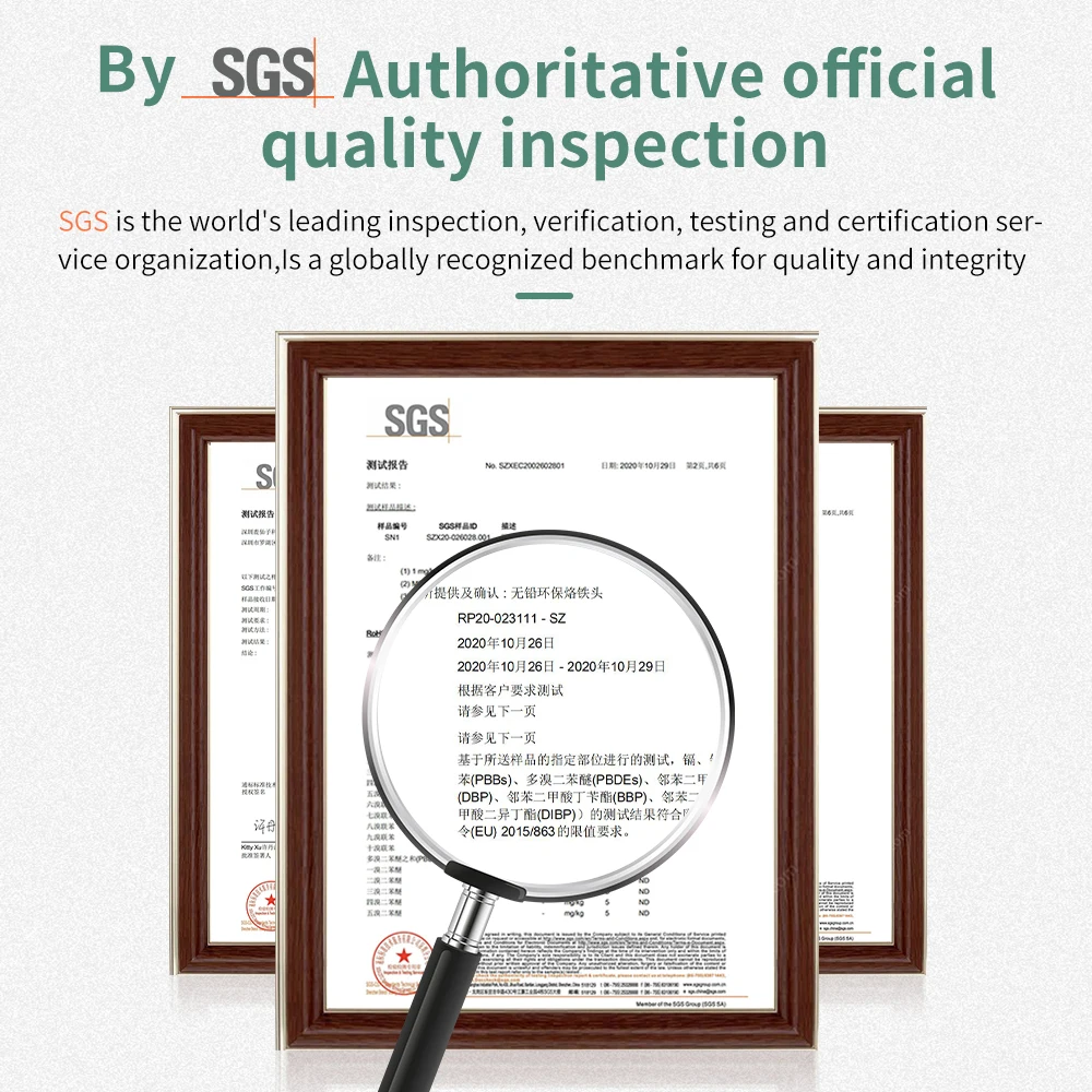 • Авторитетная официальная Проверка качества: SGS является ведущей в мире организацией по проверке, проверке, тестированию и сертификации, является всемирно признанным эталоном качества и целостности.