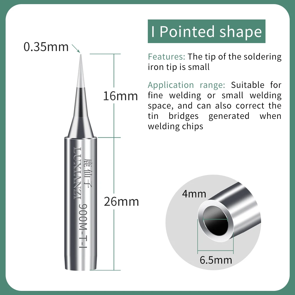 Я Тип: наконечник паяльное жало мала. Подходит для тонкой сварки или небольшого сварочного пространства, а также может исправить жестяные мосты, генерируемые при сварке чипов.