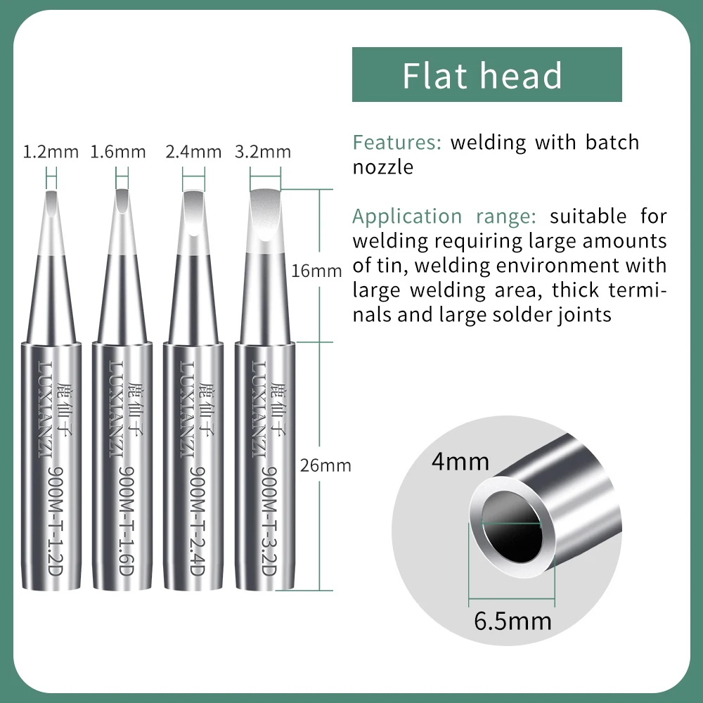 Это Тип: наконечник паяльное жало мала. Диапазон применения: подходит для тонкой сварки или небольшого сварочного пространства, а также может исправить оловянные мосты, генерируемые при сварочных чипах.