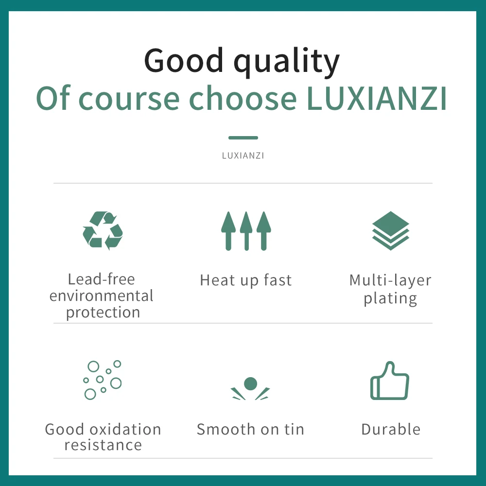 • Отличное качество: используется бескислородная медь, Защита окружающей среды, устойчивость к коррозии без свинца. Наконечник паяльника специально обработан, эффект предварительной обработки хороший, пайка гладкая, а стойкость к окислению сильна.