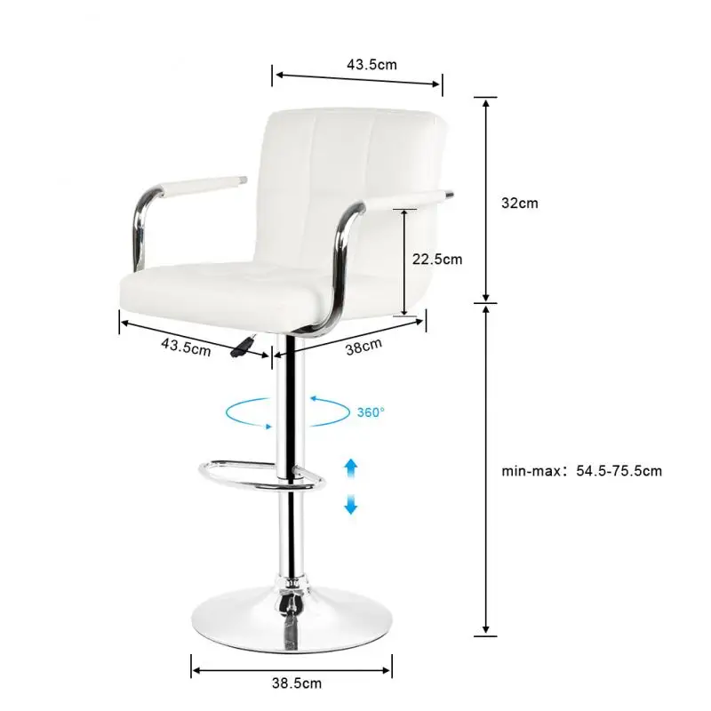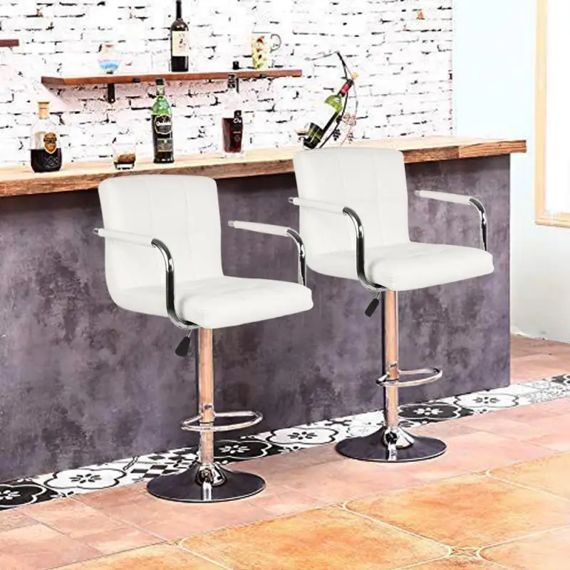 Чистый белый Два регулируемых барных стула с подлокотниками и шесть отделений с обивкой