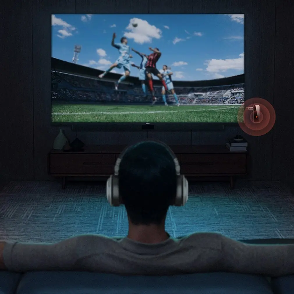 2. Подключитесь к ТВ: Подключитесь к ТВ для 3,5 мм аудио интерфейс, и передавать звук на гарнитуру через беспроводную сеть, таким образом, вы не боятся потревожить ваш семейный при просмотре фильмов в темное время суток.