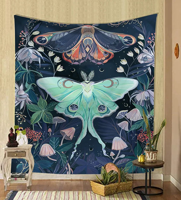 Черный фон с цветочным принтом бабочки гобелен хиппи макраме Луна настенные Висячие картины гостиная спальня вечерние Декор