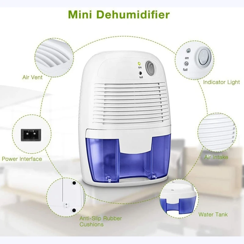 Мини-осушитель воздуха USB, портативный осушитель воздуха, электрическое охлаждение с резервуаром для воды 500 мл для дома, спальни, кухни, офиса, автомобиля