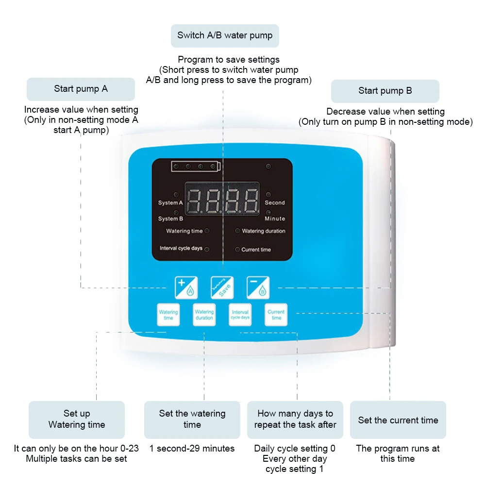 Особенности: * 1. Автоматическая система капельного орошения-Установите расписание капельного полива на таймере с ЖК-цифровым дисплеем, вы можете установить многозадачное время полива и продолжительность полива за раз, И поддерживает интервальный цикл дней, чтобы поливать ваши растения без беспокойства и без усилий. * 2. Полностью укомплектован аксессуарами-насос с использованием геотермальной энергии (1 шт./2 шт.), коннекторы (10/15/20 штук), шланг (10 м/20 м), наземный Нью-Йорк (10/15/20 штук) И солнечная панель включает в себя до 20 комнатных растений одновременно. * 3. Простой способ полива-кран не нужен, просто подключите насос и поместите его в контейнер с водой, а наземные колыбели в горшках для растений, таймер доставит воду из контейнера в горшки вовремя. * 4. Экологичный источник питания, оснащенный солнечной панелью, является экологически чистым и бесплатным способом питания системы полива. * 5. Хороший помощник для вас-слишком занят, чтобы заботиться о ваших растениях? Автополивочные наборы будут ответом, независимо от того, дома или в офисе. Посылка включает в себя: 1 комплект x Автоматическая система полива