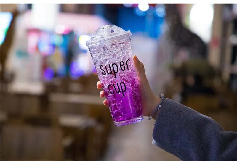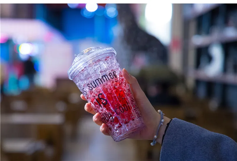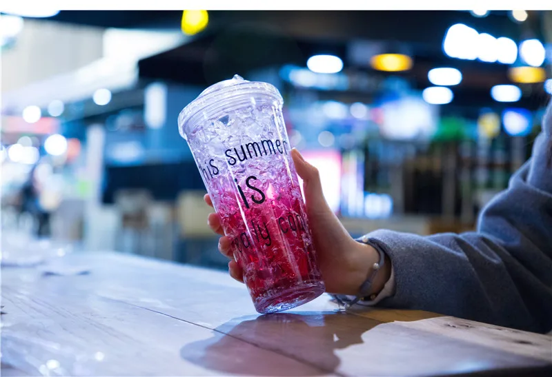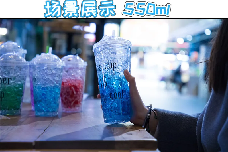 Чашка изготовлена из пищевого качества как двухслойная чашка тела, два слоя прослойки с хладагентом (гель пищевого качества частиц), и чашка охлаждена в течение 2-4 часов, ждем, когда хладагент хорошо замерзнет, затем вылейте его в напиток.