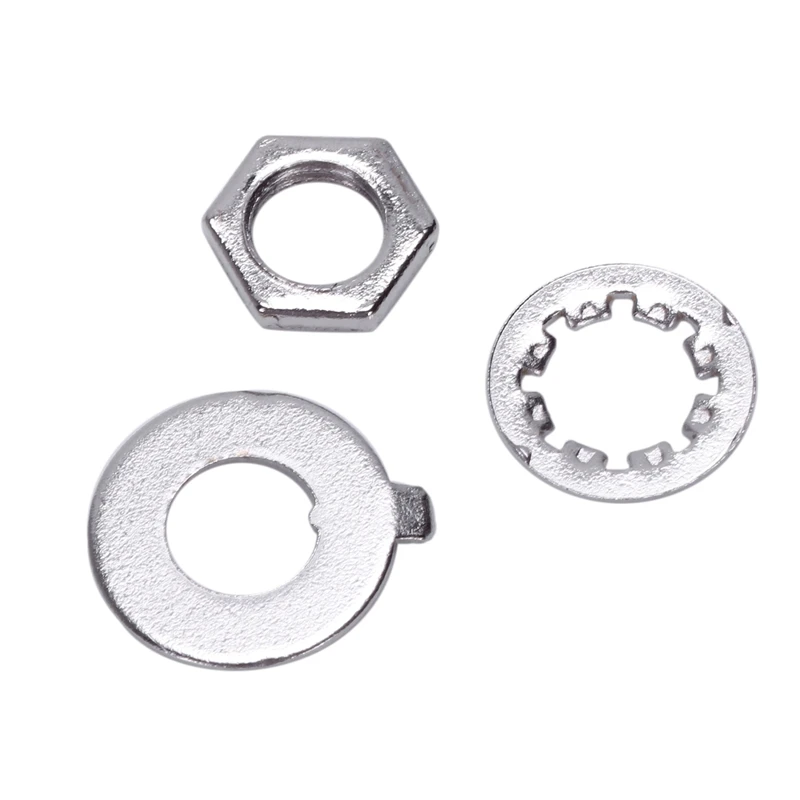 Каждый переключатель поставляется с двумя шестигранными гайками, плоской и фиксирующей шайбой.