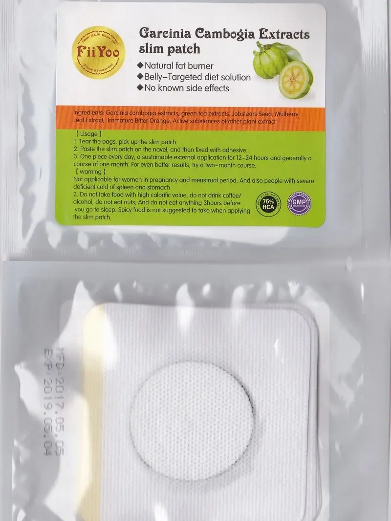 The efficacy and role of Garcinia cambogia 1. Contain a lot of HCA, this ingredient can inhibit the synthesis of fat and hinder the synthesis of fat by glucose in the body. 2. The structure is similar to citric acid, which inhibits the activity of the enzyme ATP-Citrate lyase and prevents the conversion of sugars into excess fat in the body. 3. Promote the burning of body fat and convert excess energy into glycogen that is easy to consume. 4. It can regulate fat metabolism in the human body, and store the excessive nutrients that are not consumed by the body as calories in the form of glycogen in the muscles and liver. 5. Increase the capacity of liver and muscle to store glycogen and reduce fat production. 6. If the storage of glycogen in the body increases, when the human body is in the sun, it can immediately supply energy, and the natural response of hunger due to the drop in blood sugar will also be reduced, so it has the effect of suppressing appetite, enabling the production of carbohydrates and protein. The process slows down. 7. It is heat-producing, can burn fat, stimulate body functions, and release fat. 8. Studies have confirmed that HCA can reduce fat formation by more than 40% within 8 to 12 hours after a meal. Pure Garcinia Cambogia extract powder 90% HCA. 1 pack = 5 pieces 1. Tear the bags, pick up the sliming patch. 2. Paste the sliming patch on the part you want to slim, and then fixed with adhesive. 3. One piece every day, a sustainable external application for 8-10 hours and generally a course of one month. For even better result try a two-month course. 4. It is best to use with garcinia cambogia supplement. 5. Drink more than 8 glasses of water a day.