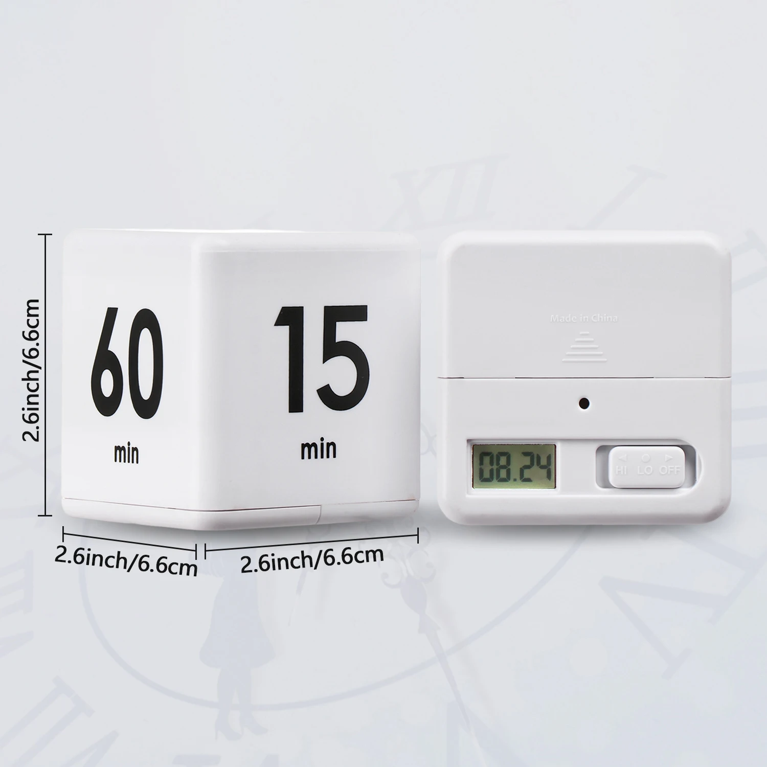 Комплект из 2 предметов, белый кубик таймеры тяжести Сенсор флип таймер дети таймер тренировки игры Таймер для времени Управление 1/3/5/10/15/2/30/ 60 минут Тип изделия: куб таймер Цвет: белый Материал: АБС-пластик Размеры: 6,6x6,6x6,6 см/2,6x2,6x2,6 дюйм (ов) Кол-во: 1/2 шт Особенности: Таймер cube может поддерживать 4 различных настройки времени, и он имеет 2 уровня высоких и низких настроек громкости, так что вы можете установить подходящее время в соответствии с вашими потребностями, который может принести удобство в вашу жизнь. Простота в эксплуатации: Таймер cube прост в использовании. Просто включите переключатель, затем переверните куб и установите требуемый номер вверх, чтобы установить соответствующее время, подходящий размер для удобной переноски. Посылка включает в себя: 1/2 шт. кубические таймеры Примечание: При ручном измерении размер может отличаться в зависимости от фактического размера.