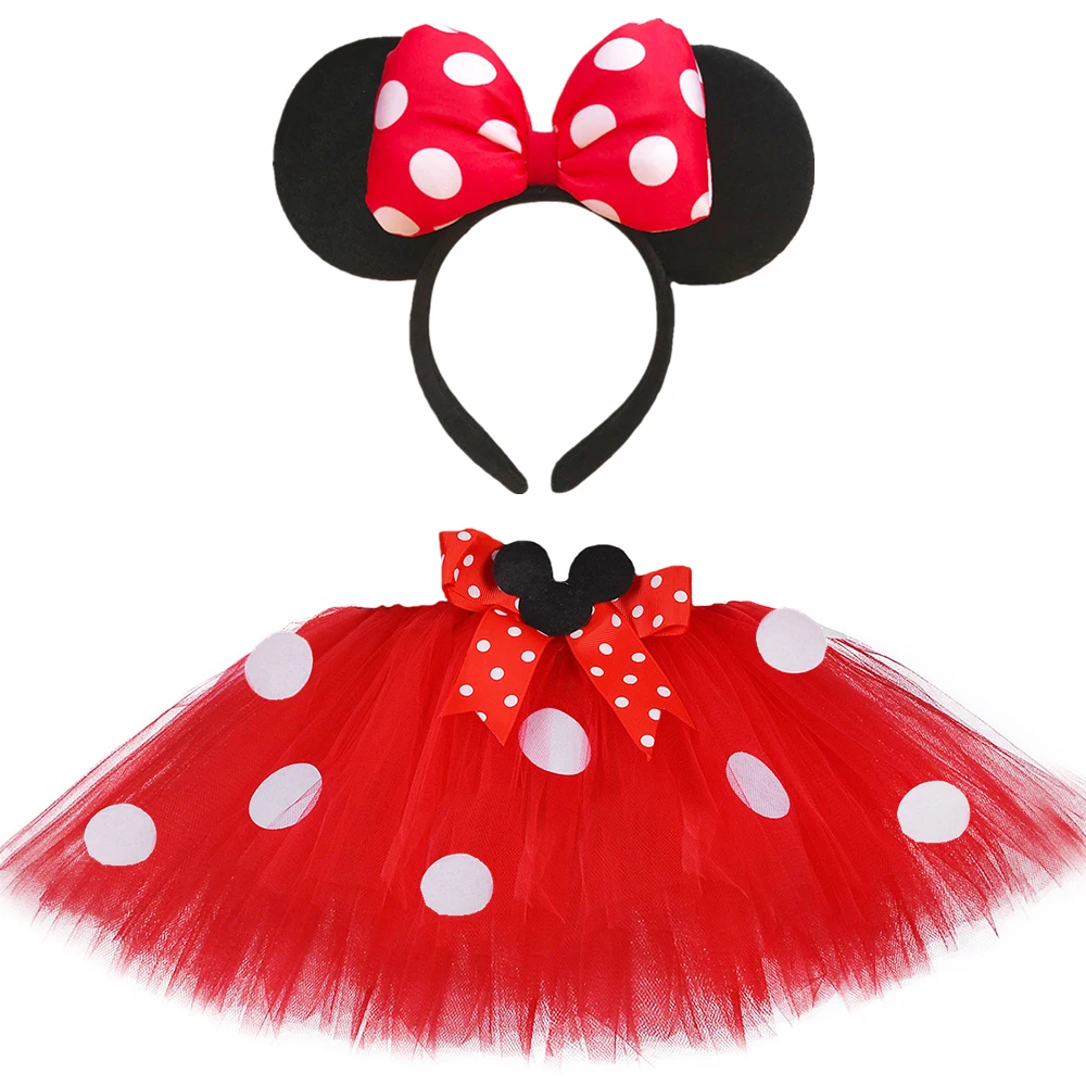 Комплект с юбкой-пачкой Минни для девочек, красная, розовая юбка-пачка из тюля в горошек для маленьких детей костюм с юбкой-пачкой детское платье на Хэллоуин, день рождения
